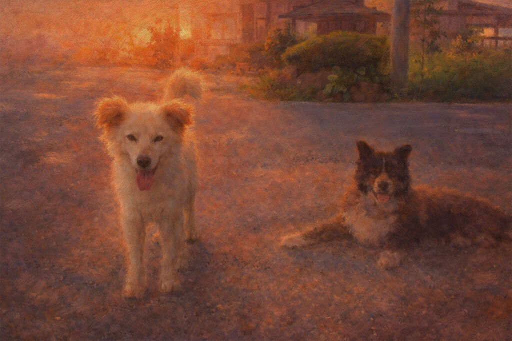 Memory Canvas作品集 2026.02.27 写真を超える一枚を。 丸山英男が手がけたMemory Canvasの作品をご紹介します。 すべて実際の写真から制作した作品です。 逆光の秋田犬 2026年 なっつとマーク 2025年 精進湖桜 2025年 初夏の富士 2025年 雪の日の夕暮れ 2026年 AKIRA 2025年 愛車 2025年 霞ヶ浦の午後